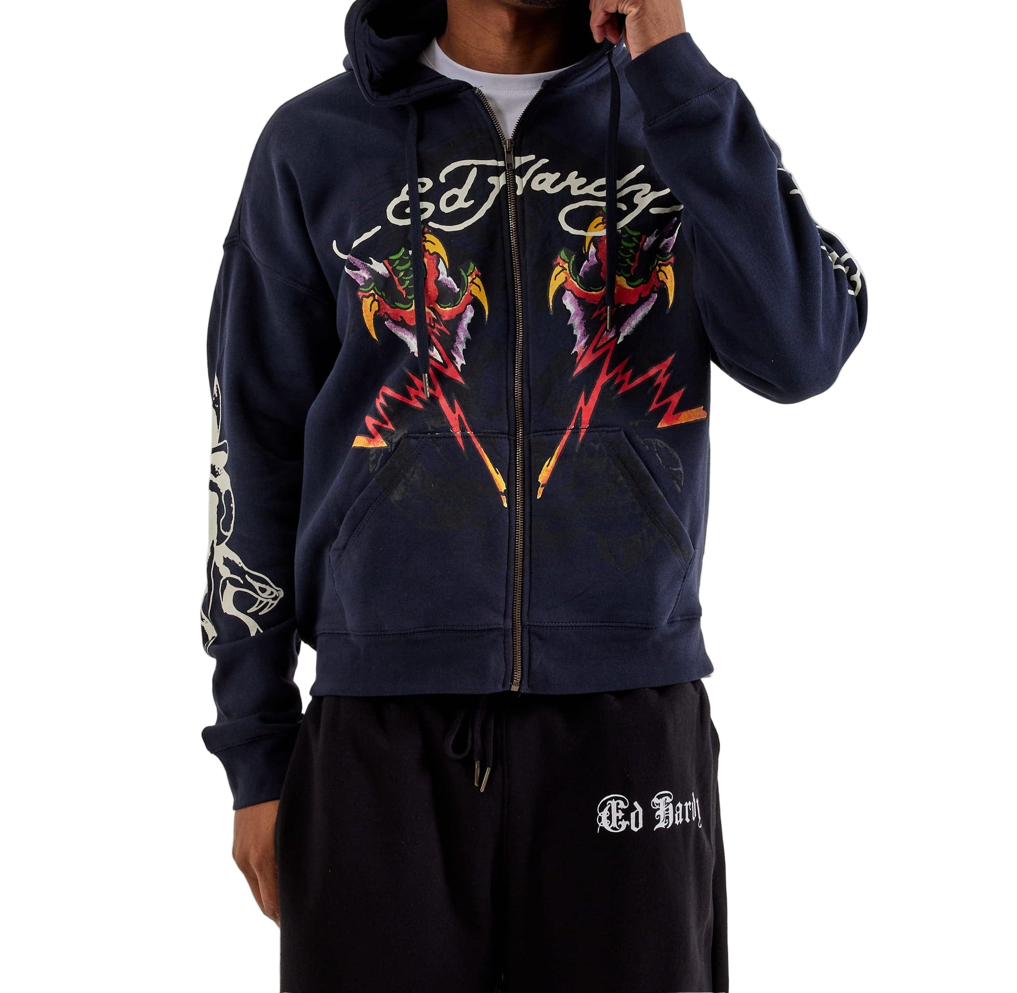 ED HARDY TIGER FLAME BOXY MENS ZIP HOODIE