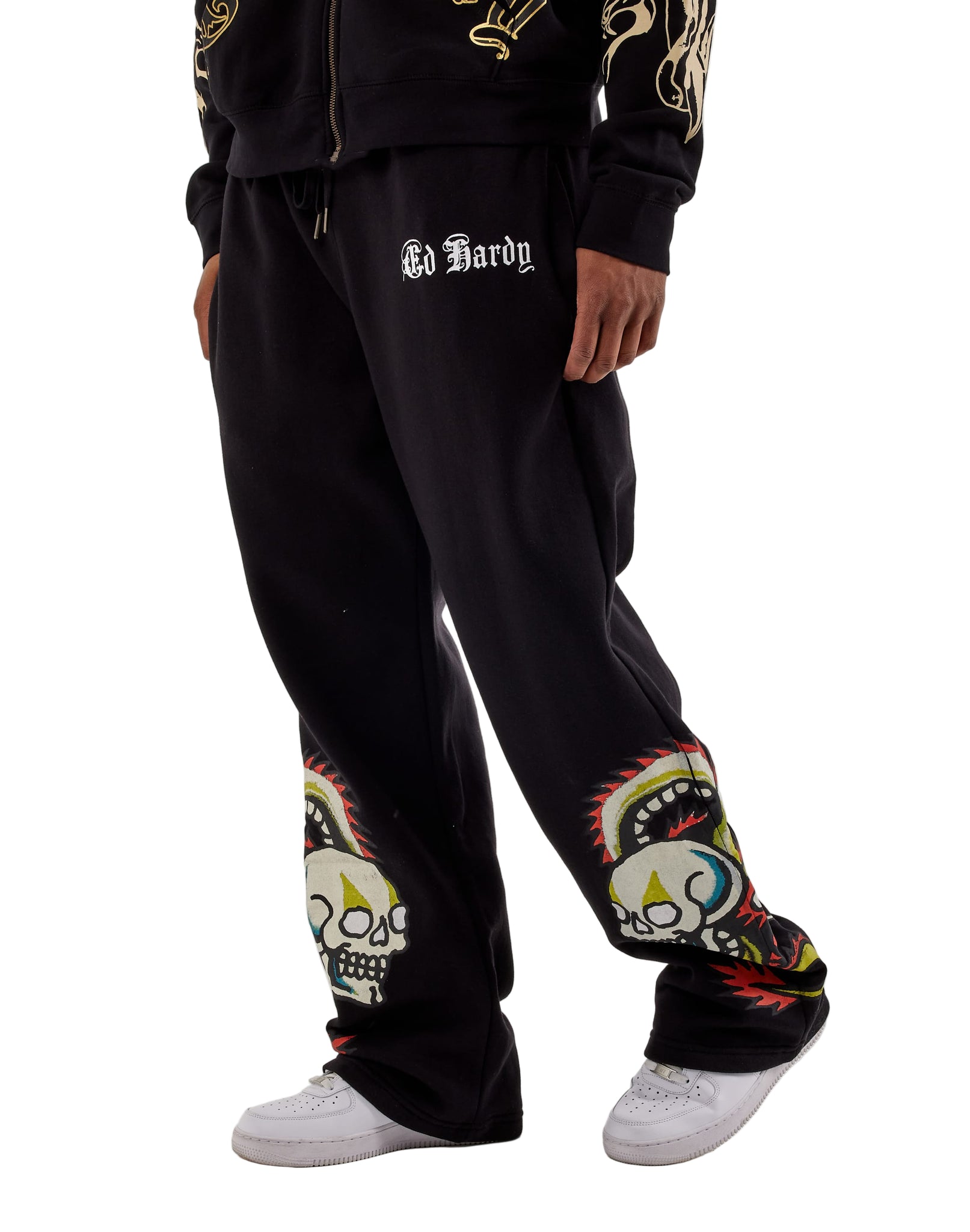 ED HARDY DRAGON SKULLS RHINESTONE ZIP MENS SWEATPANT