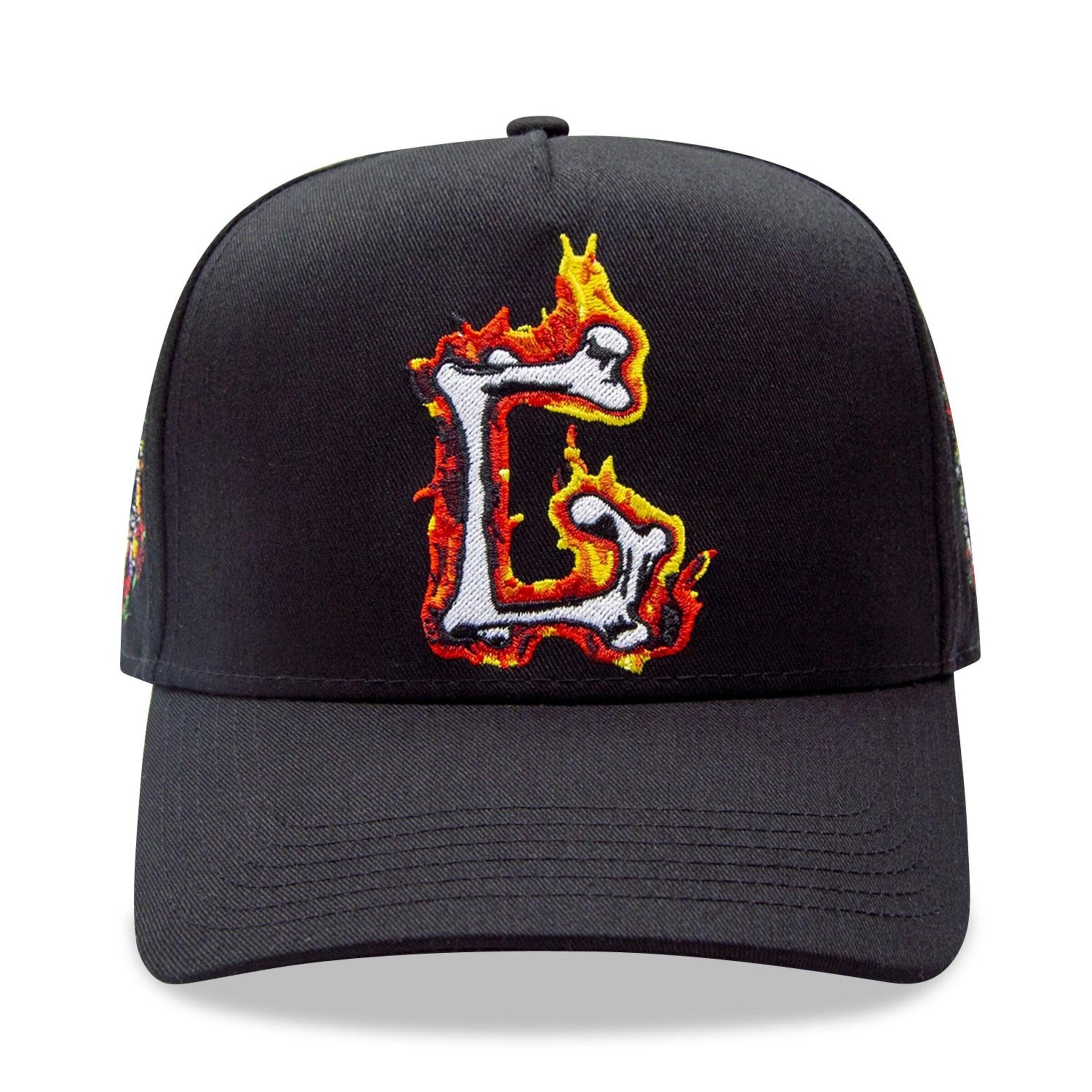 Rock the streets with the GIFTS OF FORTUNE G FLAME TRUCKER HAT, where bold style meets comfort. This one-size-fits-all snapback features intricate embroidery detailing—a striking G logo up front, a fierce flaming skull, and rose accents on the sides. Crafted from premium materials with meticulous attention to detail, it delivers the perfect fit and all-day wearability. Adjust the snapback panel to your liking and make your statement.
