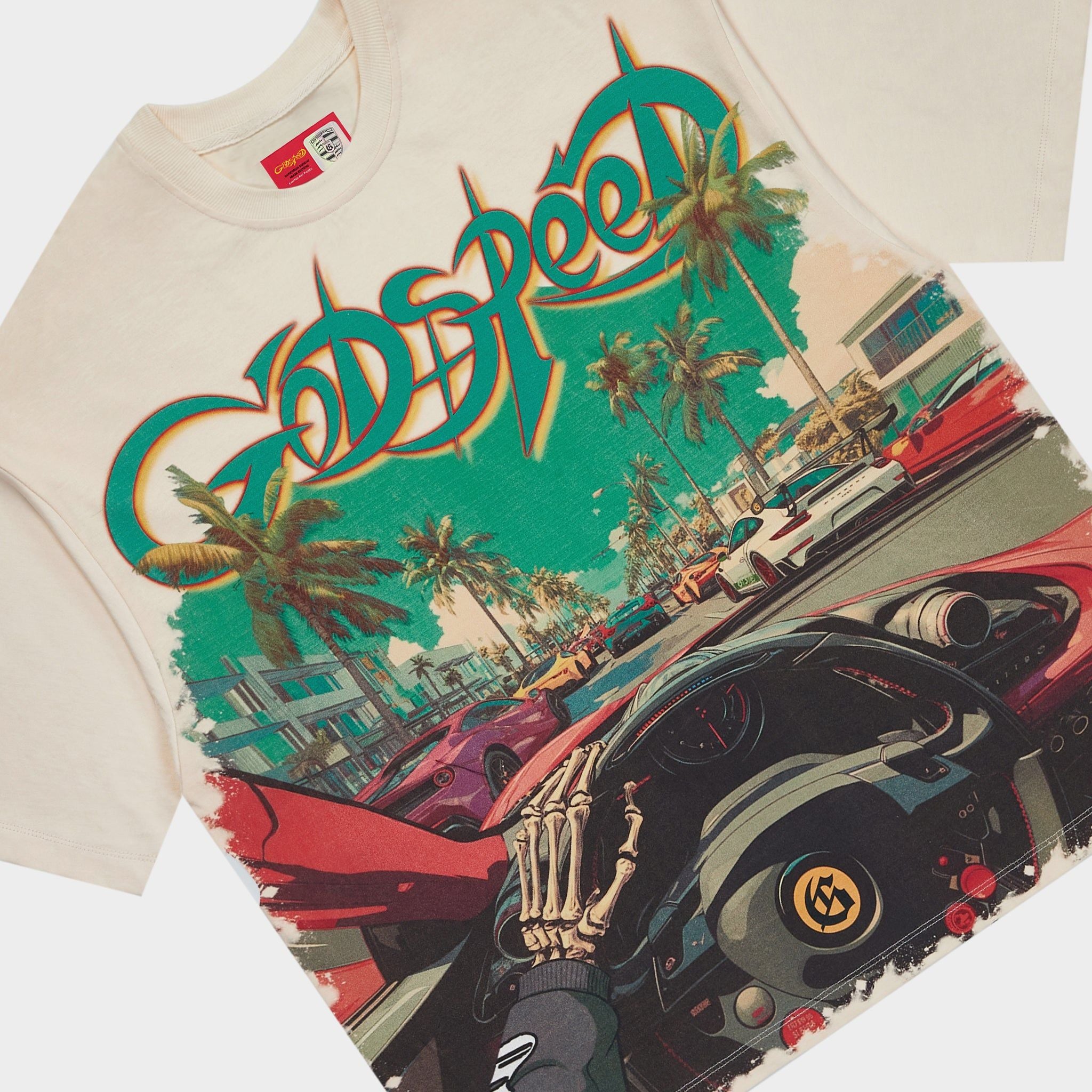 Rock this GODSPEED POWER STEERING tee and turn heads with its bold artistic statement. Constructed from premium 10oz mid-weight washed fabric, it delivers comfort that lasts through countless wears. The eye-catching crown design is elevated with intricate stone detailing that catches the light and adds serious edge to your everyday fit. Perfect for those who wear their attitude on their sleeve—literally.